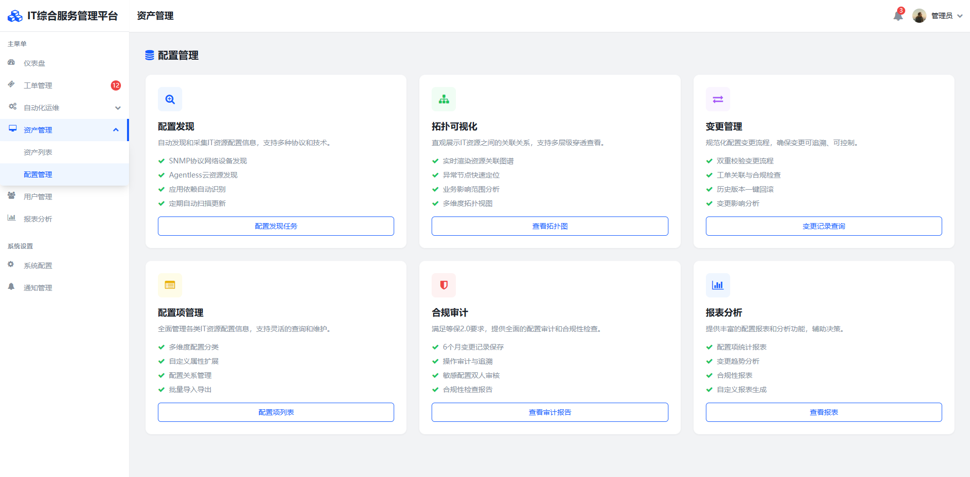 平台深度满足金融、医疗等行业的严苛合规要求,自动生成符合等保二级与ISO27001标准的审计报告模板,确保每次配置变更均可追溯。在服务延伸层面,平台无缝对接IT财务管理模块,实现云资源支出按部门、按项目的精准分摊。开放式API网关支持与ServiceNow服务管理生态、AWS云平台及钉钉协同系统的快速集成,某大型零售企业客户已基于此特性实现千家门店设备的远程批量巡检,巡检效率提升80%。