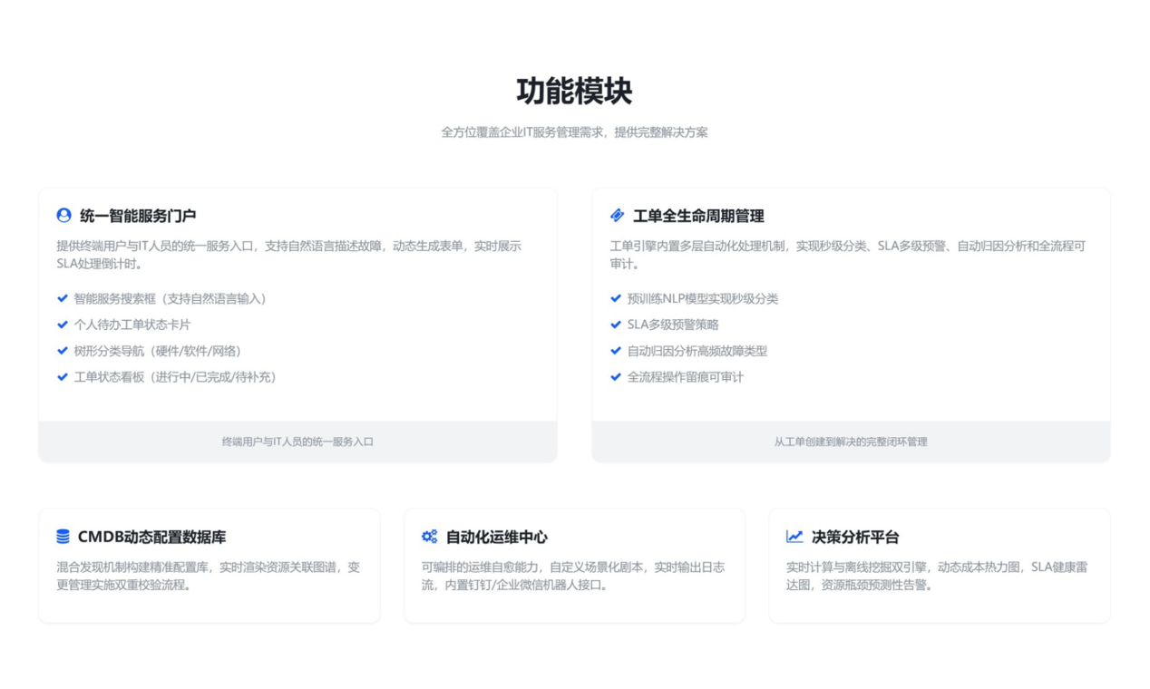杭州立钧信息技术有限公司正式推出新一代IT综合服务管理平台,该平台通过深度融合深度学习算法与自动化运维引擎,重构企业IT服务的底层逻辑。基于自研的智能决策中枢,平台整合了实时运维监控、动态资产治理、智能服务流程与多角色用户门户四大核心模块,构建出覆盖“异常监测-根因诊断-主动修复-资源优化”全链路的闭环管理体系。在技术实现层面,平台运用BERT模型实现工单语义的精准解析,通过Ansible剧本库驱动预定义修复场景的自动执行,并借助时序预测算法预判资源瓶颈,使故障处理从被动响应转向业务无感自愈。